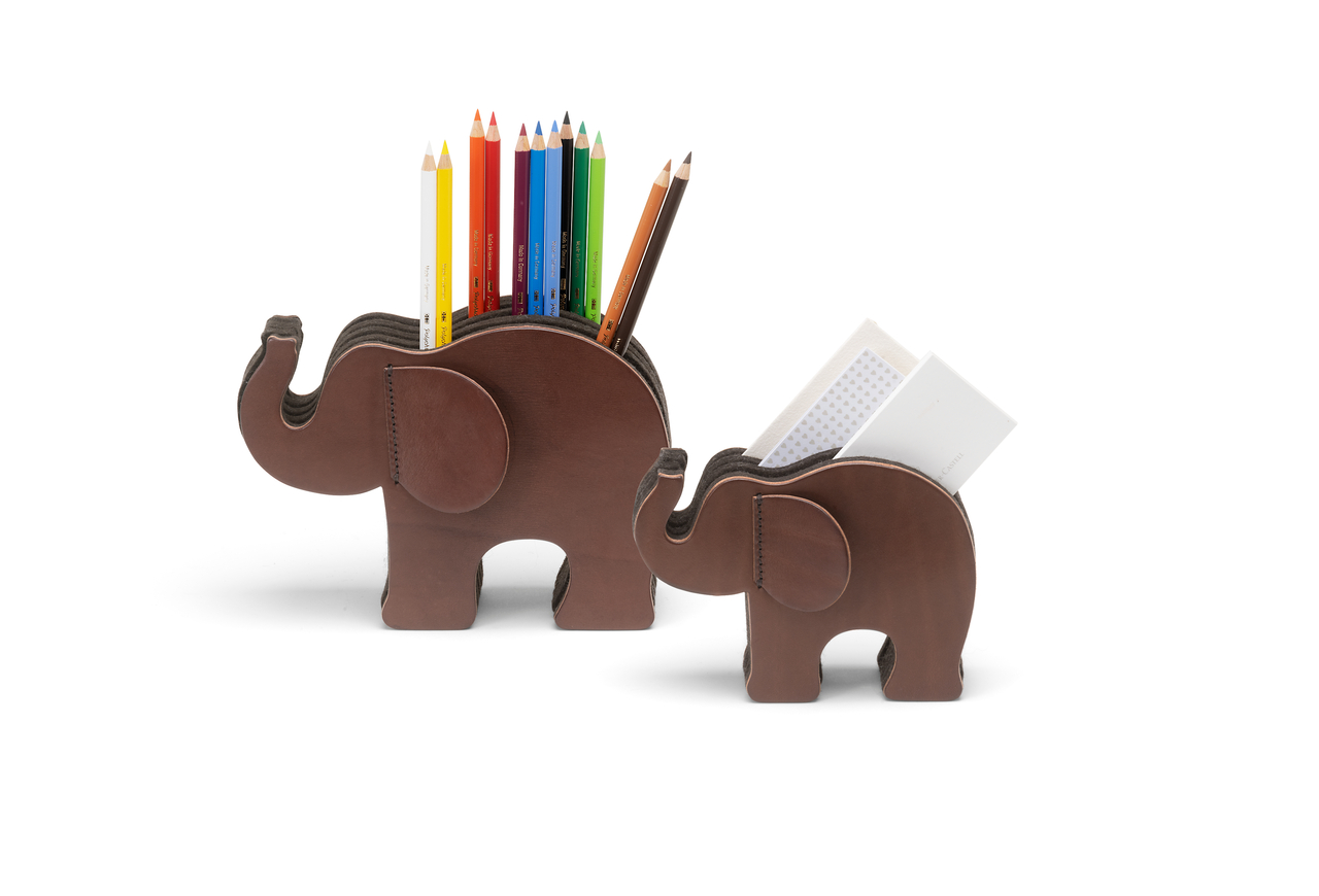 Der „kleine Riese“ Elefant ist weit mehr als ein gewöhnlicher Stiftehalter – er ist ein stilvolles Designobjekt, das jeden Schreibtisch mit Charakter, Wärme und echter italienischer Handwerkskunst bereichert. In einer traditionsreichen Manufaktur in Umbrien gefertigt, entsteht aus naturbelassenem Kalbleder und feiner Schurwolle ein Accessoire, das ebenso funktional wie ästhetisch ist.
