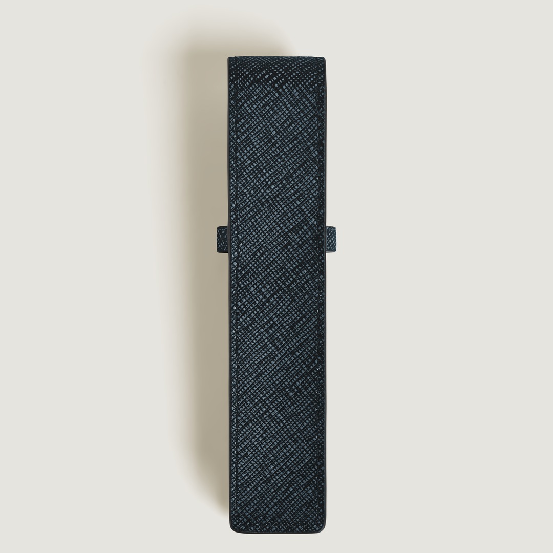 Dieses edle Schreibgeräteetui aus geprägtem Leder ist der perfekte Begleiter für alle, die ihr wertvolles Schreibgerät stilvoll schützen möchten. Die raffinierte zweifarbige Kombination aus Tweed-Blau und Schwarz verleiht dem Etui eine zeitlose Eleganz und unterstreicht seine hochwertige Verarbeitung.