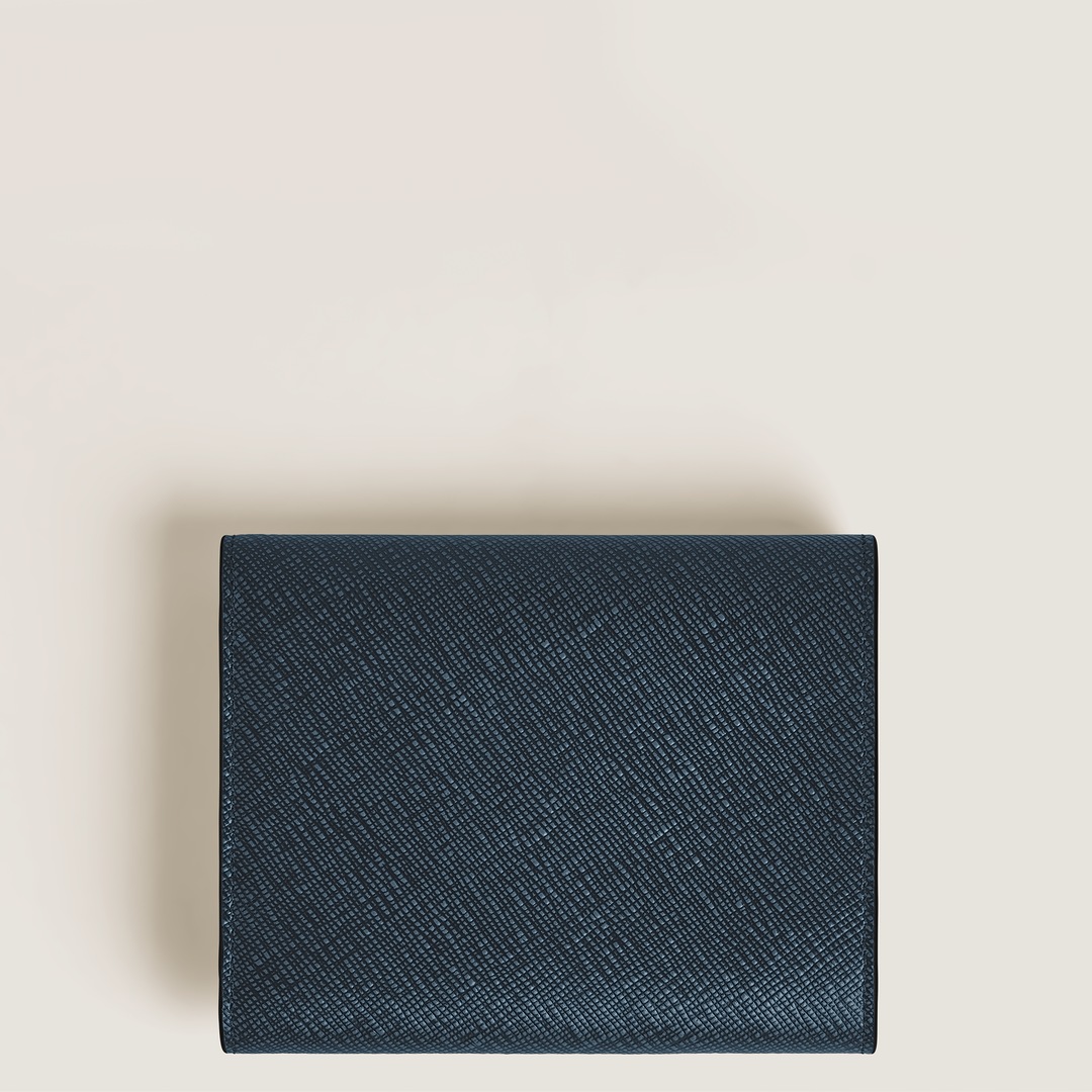 Dreifach gefaltete Brieftasche aus hochwertigem Kalbsleder – Tweed-Blau / Schwarz