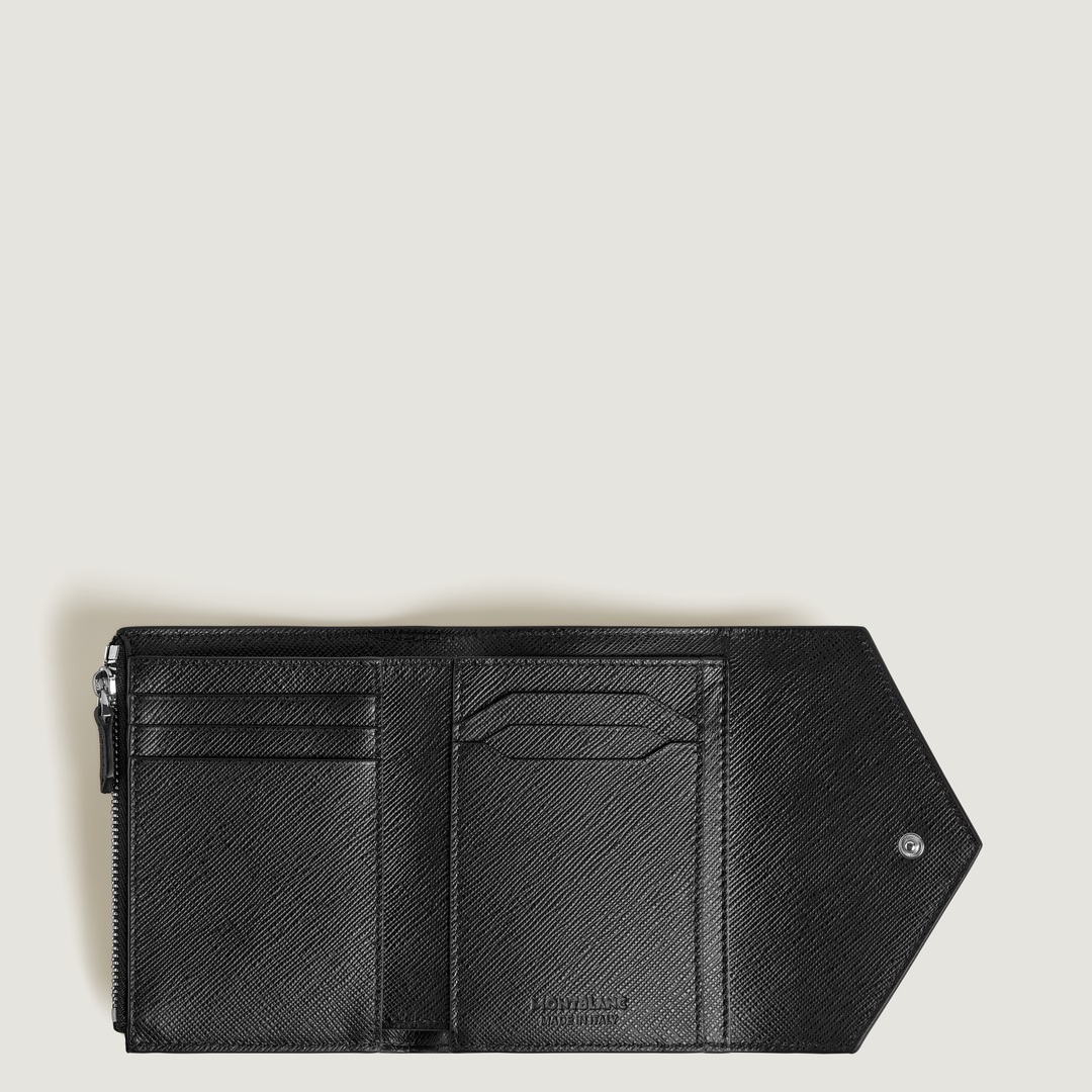 Mit ihren kompakten Maßen von 120 × 10 × 95 mm passt die Brieftasche mühelos in jede Tasche – ohne Kompromisse bei Stauraum oder Komfort. Der praktische Verschluss öffnet sich zu einem durchdachten Innenleben: