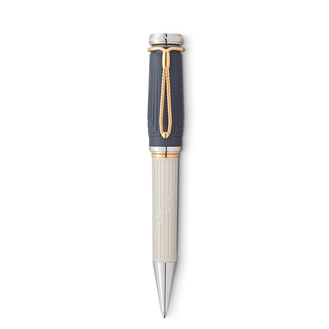 Das Schreibgerät ist inspiriert von einem Wachssiegelstempel, was sich in seiner filigranen Silhouette widerspiegelt. Der Clip besticht durch seine besondere Flechtkordelform mit Zugband, die einem Retikül ähnelt – jener eleganten kleinen Handtasche, die vornehme Damen um 1800 für Puder, Spiegel und Taschentuch verwendeten.